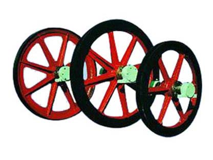 固定天輪安裝在井架上,作支撐,供礦井提升時支拖提升機卷筒到提升容器之間,引導(dǎo)鋼絲繩轉(zhuǎn)向之用。繩槽帶塑襯或膠塊,增加鋼絲繩的使用壽命。